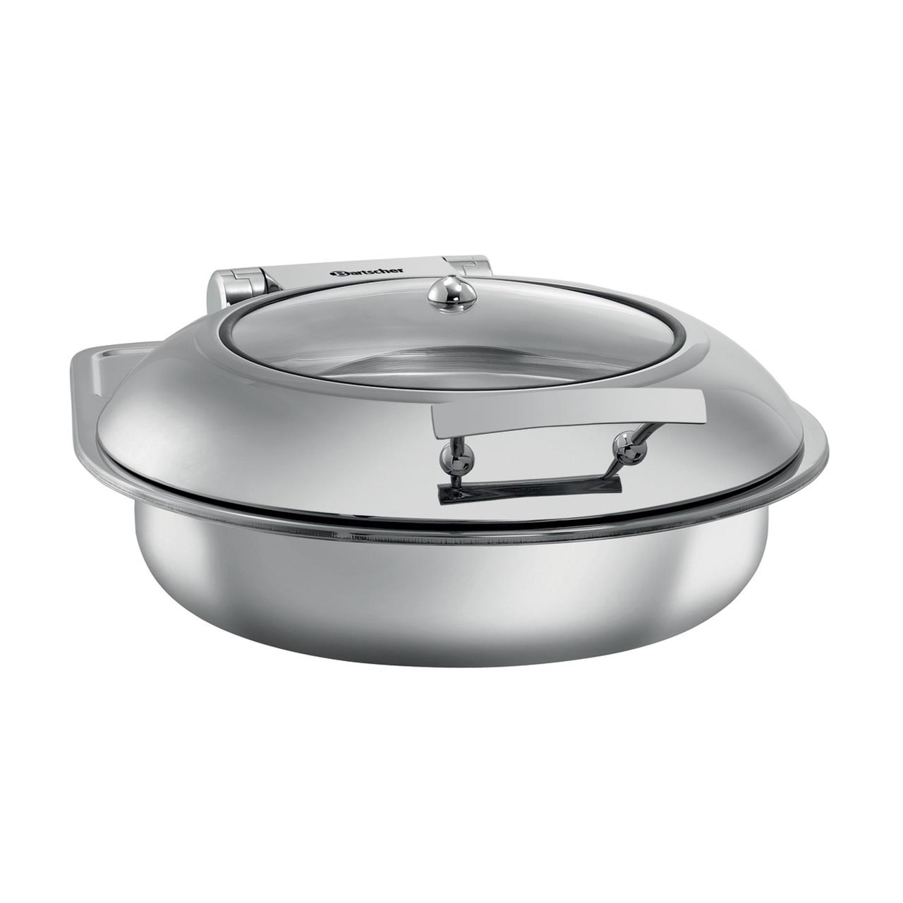 Chafing dish s regulací vnitřní teploty pomocí zabudované varné desky pro indukční nebo sklokeramický ohřev. Odnímatelná vnitřní nádoba průměr 390 mm, objem 6,2 litrů. Hydraulické otvírání víka s otvorem. Chafing je dodávaný včetně kulaté nádoby průměru 390 mm, hloubky 65 mm, CNS 18/10. Materiál ušlechtilá ocel, ucha a víko chromovaná nerezová ocel a otvor plexisklo. Funkce udržování teploty pokrmů, hydraulické otvírání víka s tlumeným zavíráním, zařízení pro vyjmutí gastronádoby Lift -Up, chafing s uchy, není stohovatelný. Rozměr: Š 435 x 472 x 185 mm. Hmotnost: 5,4 kg. K použití zařízení je nutná externí varná deska.