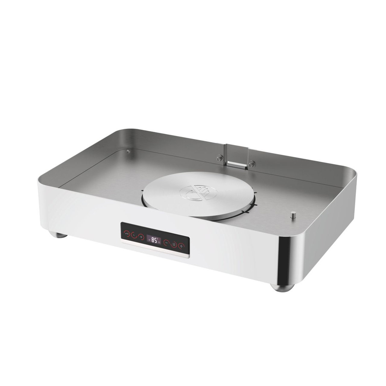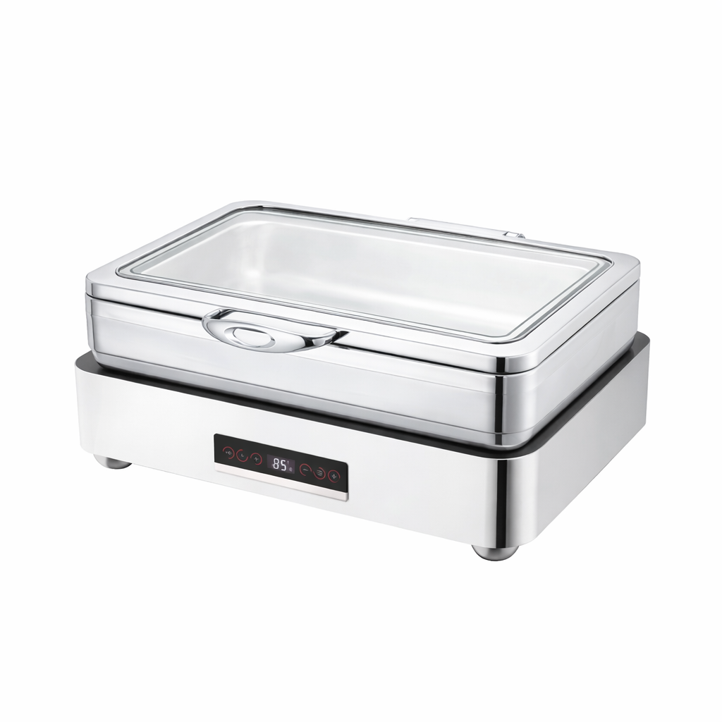 Indukční ohřívač pro chafing dish GN 1/1 je profesionální indukční podestavba určená pro moderní bufetové, cateringové a hotelové provozy. Je kompatibilní s indukčním chafingem 100034537. Ohřívač zajišťuje stabilní a rovnoměrné udržování teploty pokrmů bez použití gelového paliva a otevřeného plamene. Robustní konstrukce je navržena pro každodenní profesionální provoz a dlouhou životnost. Ideální řešení pro samoobslužné bufety, catering, hotely i konferenční prostory. Ohřívač pracuje při napětí 220–240 V / 50–60 Hz s příkonem cca 400–500 W.