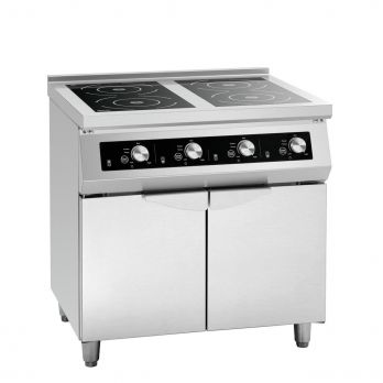 Indukční sporák s 4 varnými zónami. Nastavitelná výška nohou. Se spodní konstrukcí s dveřmi. 4 nohy. Spodní konstrukce s dveřmi Š 800 x H 560 x V 475 mm. Výškově nastavitelné od 830 do 860 mm Elektrický provoz. Typ varných desek indukce Počet varných zón 4. Materiál varné plochy sklo Rozvod plotýnek 2 x 5 kW, 2 x 3,5 kW. Velikost varných zón pr. 260 mm Počet úrovní výkonu 10. Detekce hrnce Třída ochrany IPX4 Vlastnosti: ovládání varných desek lze přepínat mezi úrovněmi výkonu a teplotou Ovládání pomocí přepínače, dotyku Materiál: nerezová ocel Příkon 17 kW / 400 V / 50/60 Hz. Připojení zařízení 3 NAC Rozměr: Š 800 x H 700 x V 830 mm Hmotnost 72,2 kg