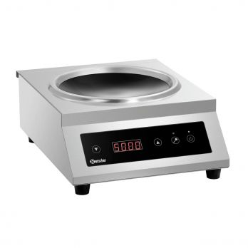 Indukční wok s výkonem 5 kW, regulace výkonu na dotykovém panelu. Materiál ušlechtilá ocel. 10 úrovní výkonu, regulace výkonu, průměr skleněné varné desky 280 mm, výkon indukční varné desky max. 5000 W. Ovládání elektronické. Ochrana proti přehřátí, digitální displej, kontrolka ZAP/VYP, dětská pojistka. Příkon: 5 kW / 400 V / 50 Hz. Rozměr: Š 400 x H 525 x V 195 mm. Hmotnost: 10,7 kg.