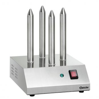 4 trny na rohlíky z nerezové potravinářské oceli, s pozinkovaným podstavcem. Teplotní rozsah do 80 °C. Příkon: 190 W/230 V. Rozměry: 240 (Š) x 280 (H) x 310 (V) mm. Hmotnost: 2,75 kg.