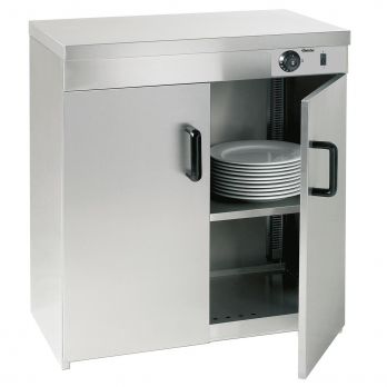Bartscher - Režon z nerezové potravinářské oceli (pro talíře do průměru 320 mm), 1 dělící police nastavitelná. Termostat 30 - 85 °C. Kontrolka zahřátí, zapnutí/vypnutí. Dvoudveřový.