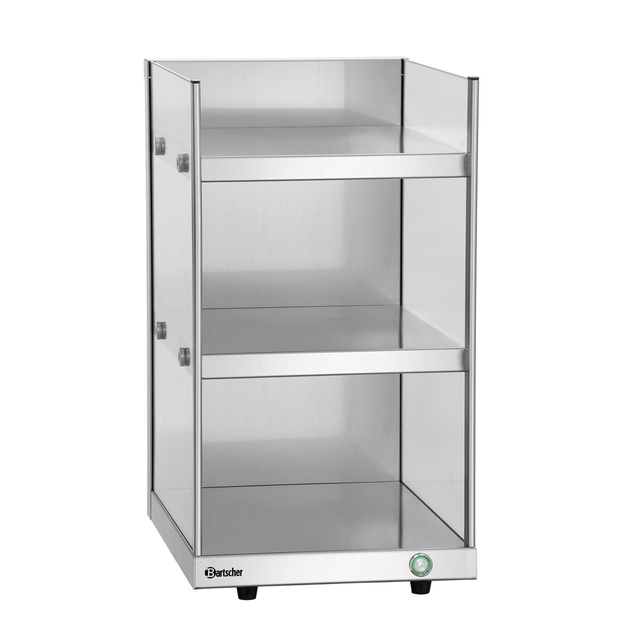 Ohřívač šálků materiál nerezová ocel / sklo. Podlahová plocha: Š 285 x H 335 mm; výška vnitřní á 180 mm. Na 3 vyhřívané police lze postavit až 144 šálků. Teplotní rozsah od 30 – 60 ° C. Bezpečnostní termostat, vypínač. Příkon: 0,3 kW / 230 V / 50 Hz. Rozměr: Š 310 x H 420 x V 540 mm. Hmotnost: 14,4 kg.