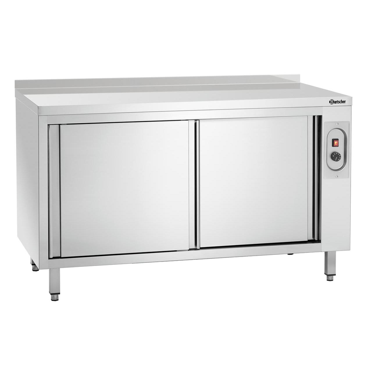 Ohřívací skříně s lemem 40 mm z nerezové oceli hloubky 700 mm různých šířek. Nastavitelné nohy, pracovní plocha ušlechtilá ocel. Rozsah teplot od 20 do 80 °C. Elektronická regulace, kontrolka, jednostranné posuvné dveře. Vnitřní prostor dělený na 2 části. 1 plná police není výškově nastavitelná. Nohy z čtvercové trubky 40 x 40 mm. Příkon 2 kW / 230 V / 50/60 Hz. Rozměry = Š x H x V v mm. Nosnost = max.nosnost pracovní desky / max. nosnost police.