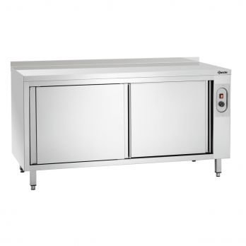 Ohřívací skříně s lemem 40 mm z nerezové oceli hloubky 700 mm různých šířek. Nastavitelné nohy, pracovní plocha ušlechtilá ocel. Rozsah teplot od 20 do 80 °C. Elektronická regulace, kontrolka, jednostranné posuvné dveře. Vnitřní prostor dělený na 2 části. 1 plná police není výškově nastavitelná. Nohy z čtvercové trubky 40 x 40 mm. Příkon 2 kW / 230 V / 50/60 Hz. Rozměry = Š x H x V v mm. Nosnost = max.nosnost pracovní desky / max. nosnost police.