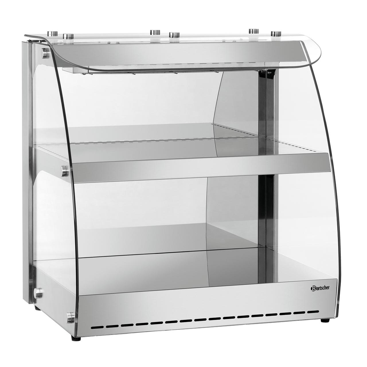 Stolní vyhřívaná vitrína Bartscher 5900 2ER s vsazeným zadním zrcátkem. Horní patro vyhřívané sálavým topením spodní části. Samostatně regulovatelné. Není výškově nastavitelné. Objem: 104 l, vnitřní rozměry vitríny: Š 590 x H 390 mm. Teplotní rozsah: od 30 do 70 °C. Termostatická regulace teploty. vnitřní osvětlení, odkládací nerezová plocha. Příkon: 0,56 kW / 230 V / 50 Hz, rozměr: Š 630 x H 465 x V 655 mm, hmotnost: 27,6 kg.
