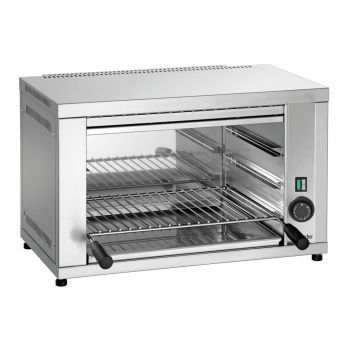 Bartscher - Skříň salamandru z chromniklové oceli 18/10 s infračerveném sálavém topení Incoloy. Počet topných těles a zón 1x. termostat, kontrolky zahřátí. Rošt na grilování nastavitelný Š 430 x H 305 mm. Salamander dodáván včetně 1 roštu a misky na drobky. Příkon: 2,2 kW/230 V. Rozměry: 597 (Š) x 368 (H) x 365 (V) mm. Hmotnost: 14 kg.
