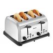 Toustovač TBRB40 Bartscher. Funkce rozmrazování, ohřívání a opékání toastů, sendvičových toastů a rohlíků, opékání bagel z jedné strany. 4 otvory, velikost 140 x 35 mm. 6 stupňů pro zhnědnutí toastů. Samostatné ovládání vždy dvou otvorů. 2x odnímatelný zásobník na drobky, tlačítko pro zastavení procesu, indikátor světla pro funkce. Součástí dodávky 2x nástavec. Materiál kartáčovaná ocel. Příkon: 1,48 kW / 230 V / 50/60 Hz. Rozměr: Š 325 x H 280 x V 170 mm. Hmotnost: 2,3 kg