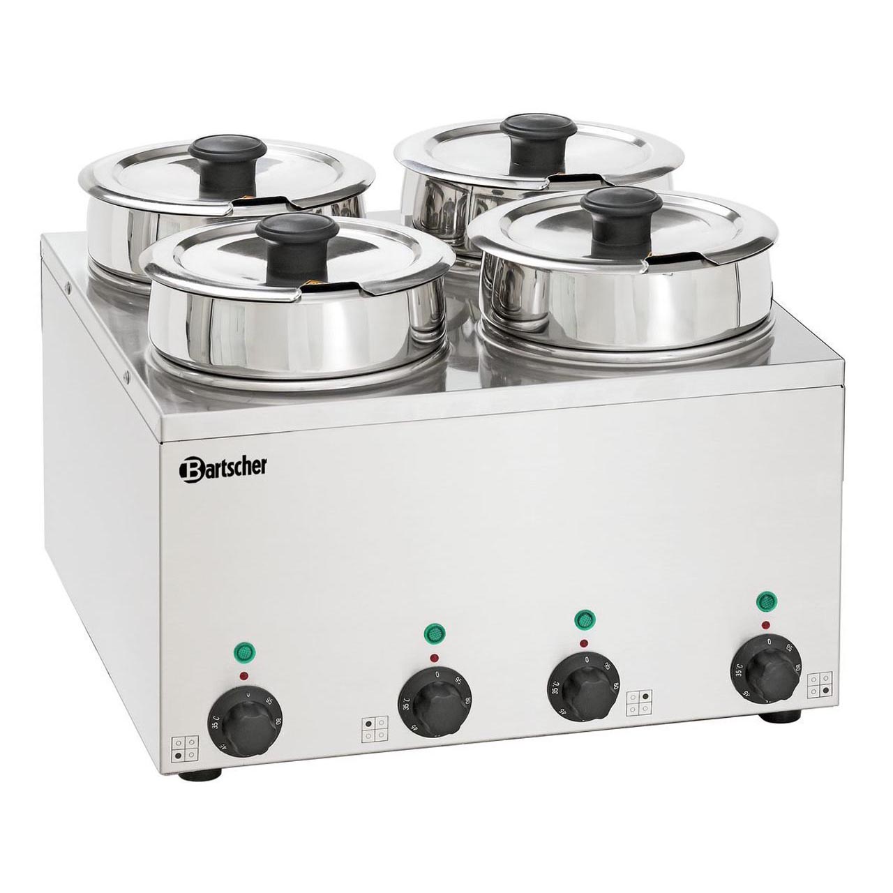 Z nerezové potravinářské oceli, 4 vložky (1 vložka o objemu 3,5 litrů). Teplotní rozsah: 0 - 95 °C. Příkon: 0,60 kW/230 V. Rozměry: 415 (Š) x 415 (H) x 320 (V) mm. Hmotnost: 10,7 kg.