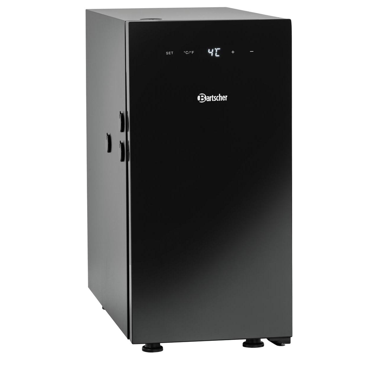 Chladnička na mléko s bočními otvory pro hadici. Mléko skladováno hygienicky na chladném místě. Obsah 9 litrů. Barva černá. Rozměr vnitřní: Š 160 x H 190 x V 280 mm. Chlazení cirkulující vzduch, teplotní rozsah od 0 do 8 °C. Elektronická regulace teploty, dotykové ovládání, v krocích po 1 °C; Automatické odmrazování, odtávání. Termostat. Chladicí kapalina R600a / 0,0108 kg. Okolní teplota do 32 °C. Klimatická třída N, T. Přímý přívod mléka otvory na boku přístroje: 3 otvory vlevo, 2 otvory vpravo, PR. 9,8 mm / 12,3 mm Vnitřní osvětlení, digitální displej, uzamykatelné, dveře panty vpravo (nelze měnit). Příkon: 0,068 kW / 230 V / 50-60 Hz. Rozměr: Š 225 x H 450 x V 455 mm. Hmotnost: 13,22 kg.