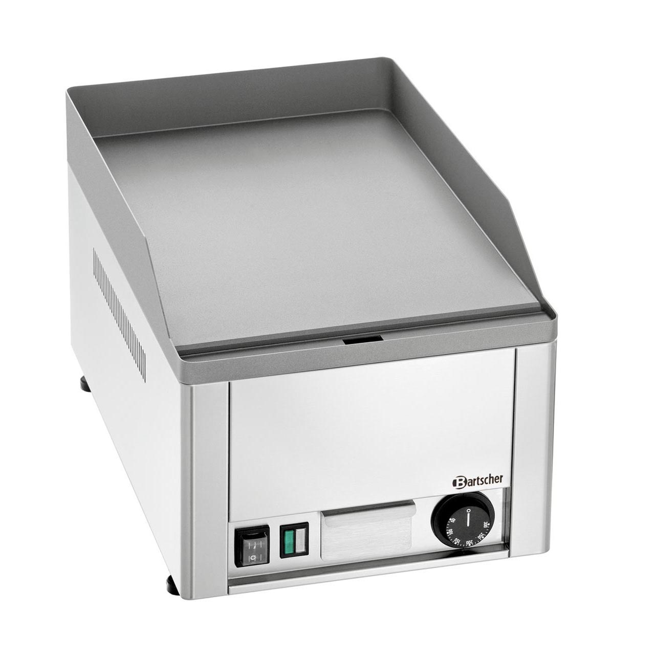 Stolní grilovací deska: plášť z chromniklové potravinářské oceli, horní hladká deska z litiny. Regulace teploty termostatem od 50 do 300 °C, kontrolka chodu a vyhřátí. Včetně nádoby na tuk a čisticí škrabky.