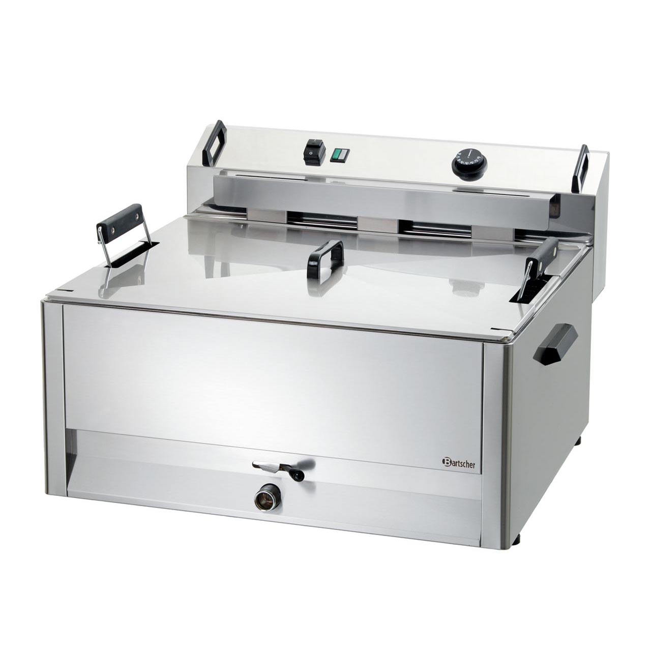Fritéza pekařská objemu s vypouštěcím kohoutem a bezpečnostním termostatem, vana s velkou chladicí zónou, rozměr vany Š 615 x H 490 x V 130 mm objemu 30 litrů. Rozsah teploty od 50 do 190 °C, nastavitelná výška noh. Vyjímatelný topný element. Příkon 15 kW / 400 V. Koš fritovací Š 570 x H 440 x V 80 mm objemu 19,2 litrů. Kontrolka teploty, ZAP/VYP. Včetně 1 víka a 1 koše. Rozměr fritézy Š 660 x H 650 x V 410, hmotnost 23,4 kg.