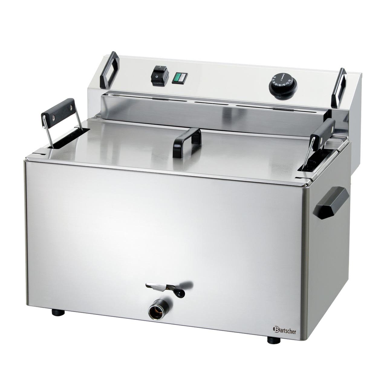 Fritéza s podlouhlým fritovacím košem na sladké pochoutky jako jsou vdolky nebo koblihy. Široká vana se zaoblenými vnitřními rohy pro pohodlné čištění a údržbu. Vana i vrchní deska je vyrobena z nerezové oceli. Fritéza je dodávaná včetně víka a fritovacího koše. Nastavitelné nožičky. Studená zóna, vypouštěcí kohout s bezpečnostním zařízením, vyjímatelné topné těleso, bezpečnostní termostat. Teplotní rozmezí od 50 do 190 °C. Široká varná plocha. Příkon: 9 kW / 400 V / 50 Hz Rozměr koše: Š 475 x H 235 x V 80 mm Rozměr nádoby: Š 515 x H 305 x V 130 mm Rozměr celkem: Š 560 x H 470 x V 400 mm, hmotnost: 14,7 kg