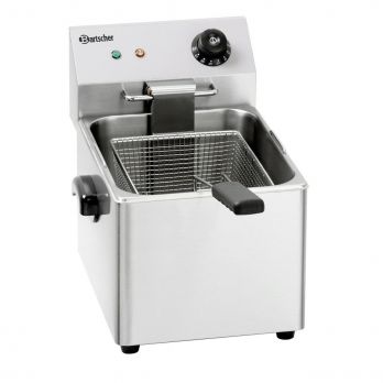 Elektrická fritéza z nerezové potravinářské oceli. Ve výrobku je zabudovaný bezpečnostní termostat (ochrana proti přehřátí). Studená zóna. Objem: 8 litrů. Příkon: 3,25 kW / 1N AC 230 V. Příslušenství zahrnuje: 1 vanu, 1 koš. - provedení: 1 vana, 1 koš - objem: 8 litrů - příkon: 3,25 kW / 230 V 50 Hz - rozměr fritézy: 305 (Š) x 620 (H) x 340 (V) mm - rozměr koše: 195 (Š) x 245 (H) x 140 (V) mm; objem 5,5 litrů - hmotnost: 6,7 kg