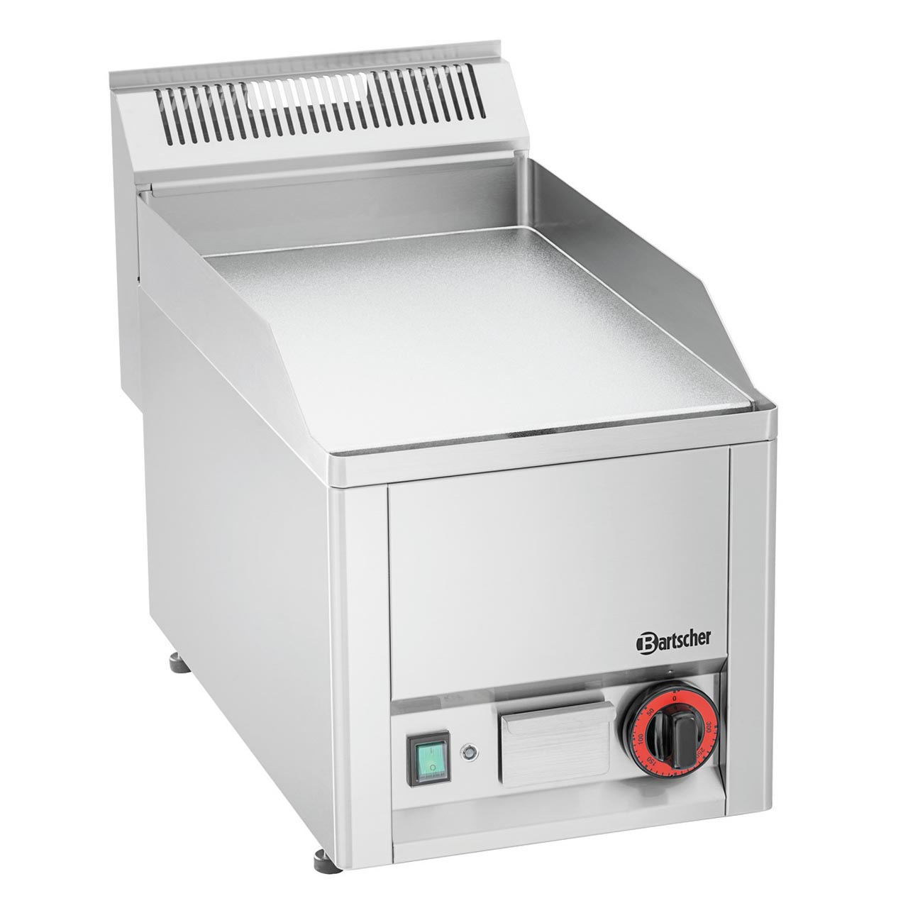 Grilovací deska ze speciální oceli s hladkých chromovaným povrchem s miskou na přebytečný tuk. - Rozměr hladké pracovní grilovací plochy Š 320 x H 480 mm. Připevněná ochrana proti stříkajícímu tuku. 1 topná zóna, teplotní rozmezí ohřevu od 50 do 300 °C, kontrolka ohřevu, ZAP/VYP. Včetně čistící škrabky. Rozměr: Š 330 x H 625 x V 450 mm. Hmotnost: 24 kg. Příkon: 3 kW / 230 V/ 50/60 Hz.