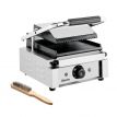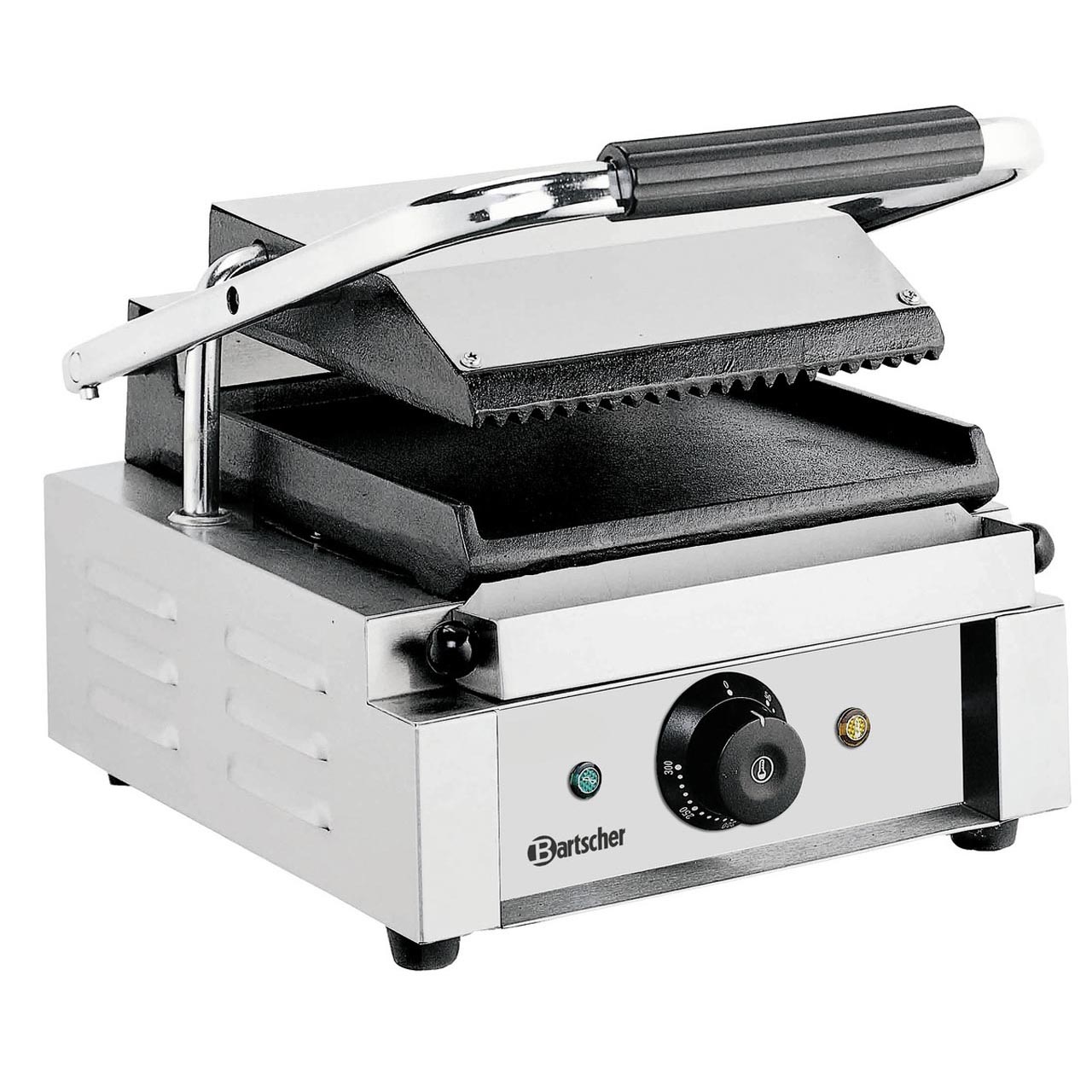 Možnost využití i při otevření jako grilovací desku. Robustní konstrukce z nerezové oceli. Litinové desky pro optimální přenos tepla. Samostatný termostat 50 až 300 °C. Kontrolka ohřevu; kontrolka zapnuto / vypnuto. Příkon: 1,8 kW / 230 V. Rozměry: 290 (Š) x 395 (H) x 210 (V) mm; rozměry horní grilovací desky: 214 (Š) x 214 (H) mm, rozměry dolní grilovací desky: 220 (Š) x 235 (H) mm. Hmotnost: 13,0 kg. Příslušenství zahrnuje: 1 čistící kartáč a 1 odkapávací misku.