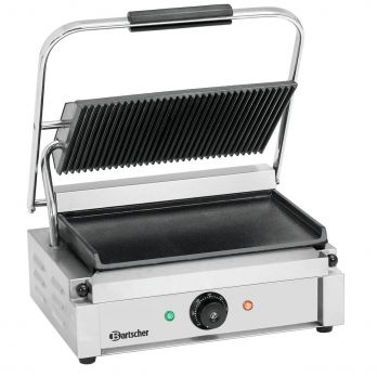 Horní grilovací deska rýhovaná, dolní hladká. Robustní konstrukce z nerezové oceli. Litinová deska pro optimální přenos tepla. Samostatný termostat 50 až 300 °C. Kontrolka ohřevu; kontrolka zapnuto/vypnuto. Odkapávací miska. Příkon: 2,2 kW/230 V. Rozměry: 410 (Š) x 370 (H) x 200 (V) mm; rozměry horní grilovací desky: 335 (Š) x 220 (H) mm, rozměry dolní grilovací desky: 335 (Š) x 230 (H) mm. Hmotnost: 18 kg.