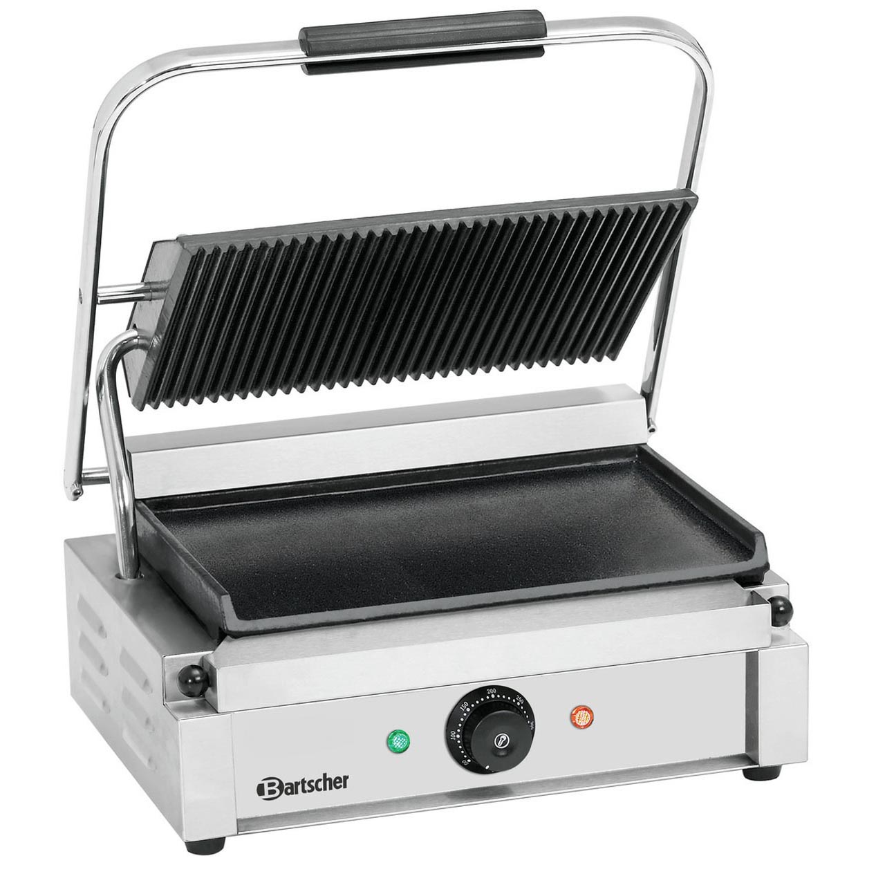 Elektrický kontaktní gril Panini - nahoře rýhovaný, dole hladký