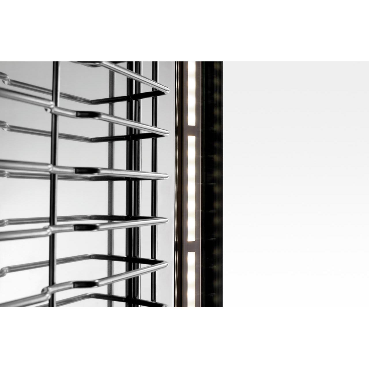 Elektrický konvektomat až s 300 programy. Součástí dodávky 1 rošt a 1 plech rozměru GN 1/1, 1x PVC odpadní trubka, 1x náhradní vzduchový filtr, 1x přívodní hadice vody. Varná komora CNS 18/10. Funkce: Cirkulující vzduch, vaření v páře, kombinované vaření v páře, nízkoteplotní vaření, Delta-T vaření, reverzní chod motoru (kolečka ventilátoru), vytváření páry přímým rozstřikováním. Funkce Rack Control. LED displej (zvlhčování, Delta-T vaření, fáze přípravy, teplota jádra pokrmu, rychlost ventilátoru, program, teplota, čas). Vyjímatelné vodící lišty. Dvojité prosklení dvířek. LED osvětlení ve dvířkách. Vnitřní osvětlení. Zaoblená pečicí komora. Nepřetržitý režim. Dotykové ovládání. Jeden větrák. Na vyžádání lze dodat konvektomat s levými panty. - 300 předinstalovaných a 300 programovatelných programů vaření - 9 fází vaření - nastavení času do 599 minut - rozsah teploty od-do: 50 - 300°C - řízení rychlosti ventilátoru 3 stupně - odsávání par, regulace odtahu par - bezstupňová regulace tep