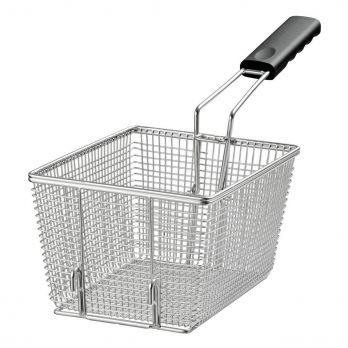 Nerezové náhradní koše do fritéz. Velikost koše bez rukojeti je uvedena: šířka x hloubka x výška v mm. Objem značí objem fritézy / objem koše.