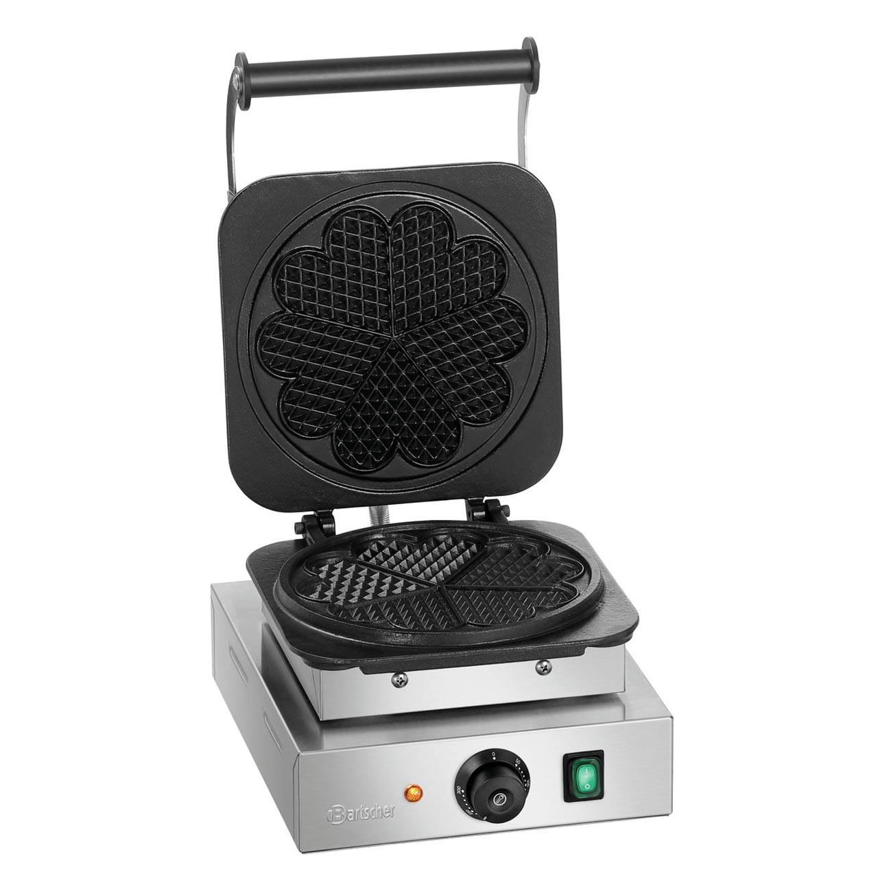 Vaflovač s pečicí deskou ve tvaru srdce, pevně připojenou. Nerezové provedení. Velikost desky: pr. 210 mm, výška 16 mm. Termostatická regulace teploty: 50 - 300 °C. Příkon: 2,2 kW/230 V. Rozměry: 285 (Š) x 470 (H) x 220 (V) mm. Hmotnost: 15,35 kg. Včetně čistícího kartáčku. Snadná montáž.