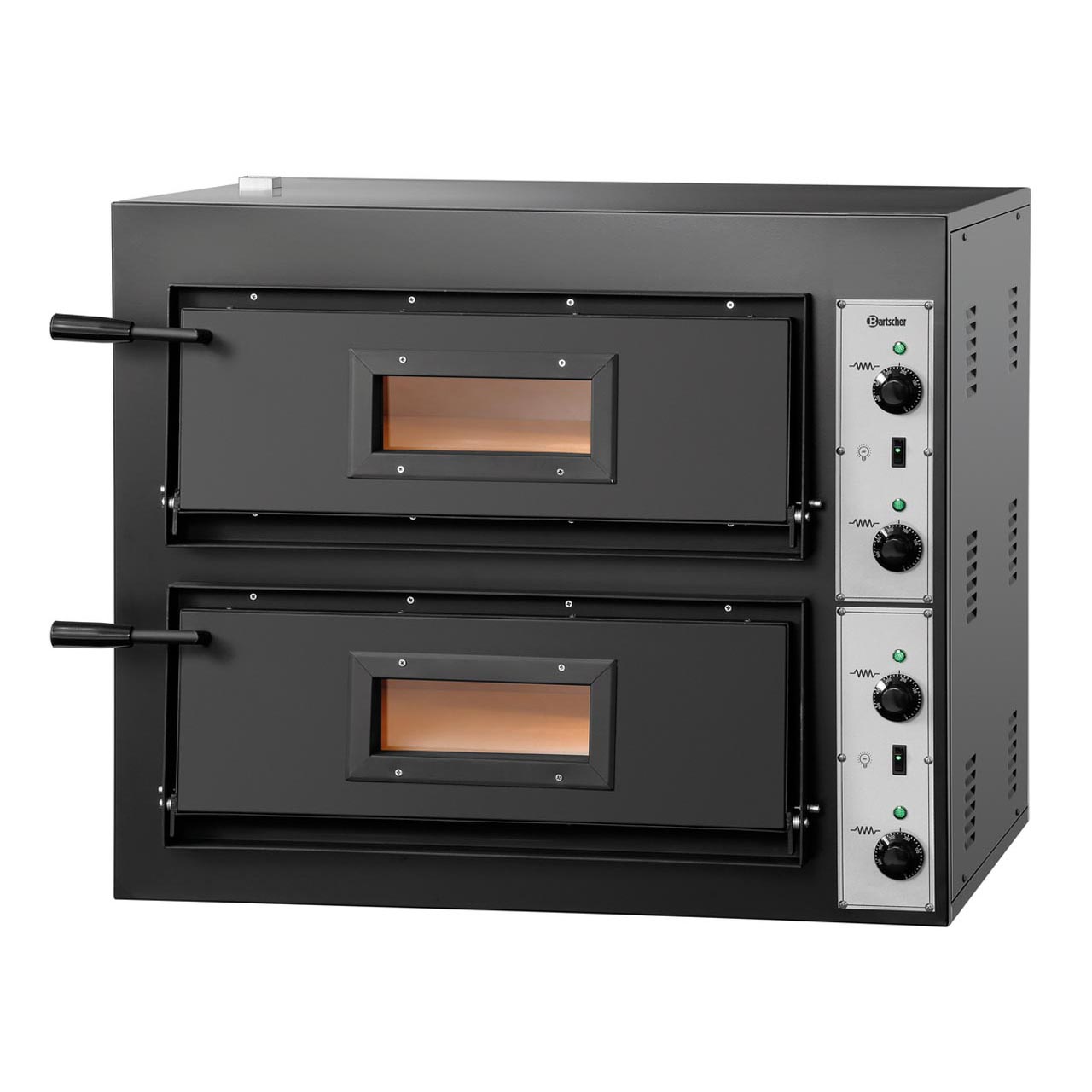 Dvoupatrová pec na pizzu. Skříň: ocelový lakovaný plech, samostatná regulace horní a dolní teploty, dno z tepelně odolného kamene, pečicí komora: 610 (Š) x 610 (H) x 140 (V) mm. 2 x 4 pizzy o pr. 30 cm, teplota do 400°C, vnitřní osvětlení. Příkon: 8,4 kW/380 V. Rozměry: 890 (Š) x 880 (H) x 760 (V) mm. Hmotnost: 112,3 kg.