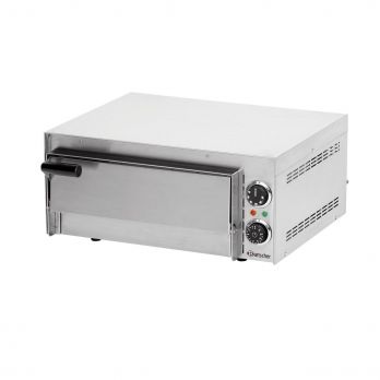 1 pečící komora (O pizzy 35 cm). Pec na pizzu v celonerezovém provedení s nastavitelnými nožičkami; pečící komora: 410 (Š) x 370 (H) x 90 (V) mm, dno pečící komory je vyrobeno z tepelně odolného kamene. Regulace teploty: do 300 °C s časovačem. Příkon: 2,0 kW / 230 V. Rozměry: 545 (Š) x 500 (H) x 230 (V) mm. Hmotnost: 18,8 kg.