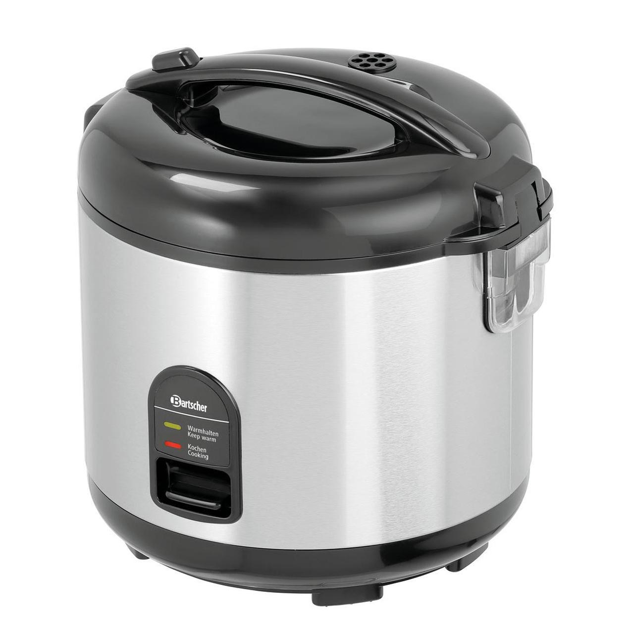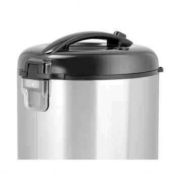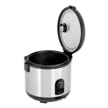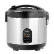 Vhodný na různé druhy rýže nebo k vaření masa, ryb nebo zeleniny v páře,a udržování jejich teploty. Skříň z nerezové potravinářské oceli; víko a spodní část z odolného plastu; vnitřní nádoba s nepřilnavým povrchem. Objem: 1,8 litrů. Rozměry: Š 290 x H 262 x V 293 mm. Příkon: 700 W/230 V. Hmotnost: 2,8 kg. Včetně odměrky, lžíce na rýži a sítka.