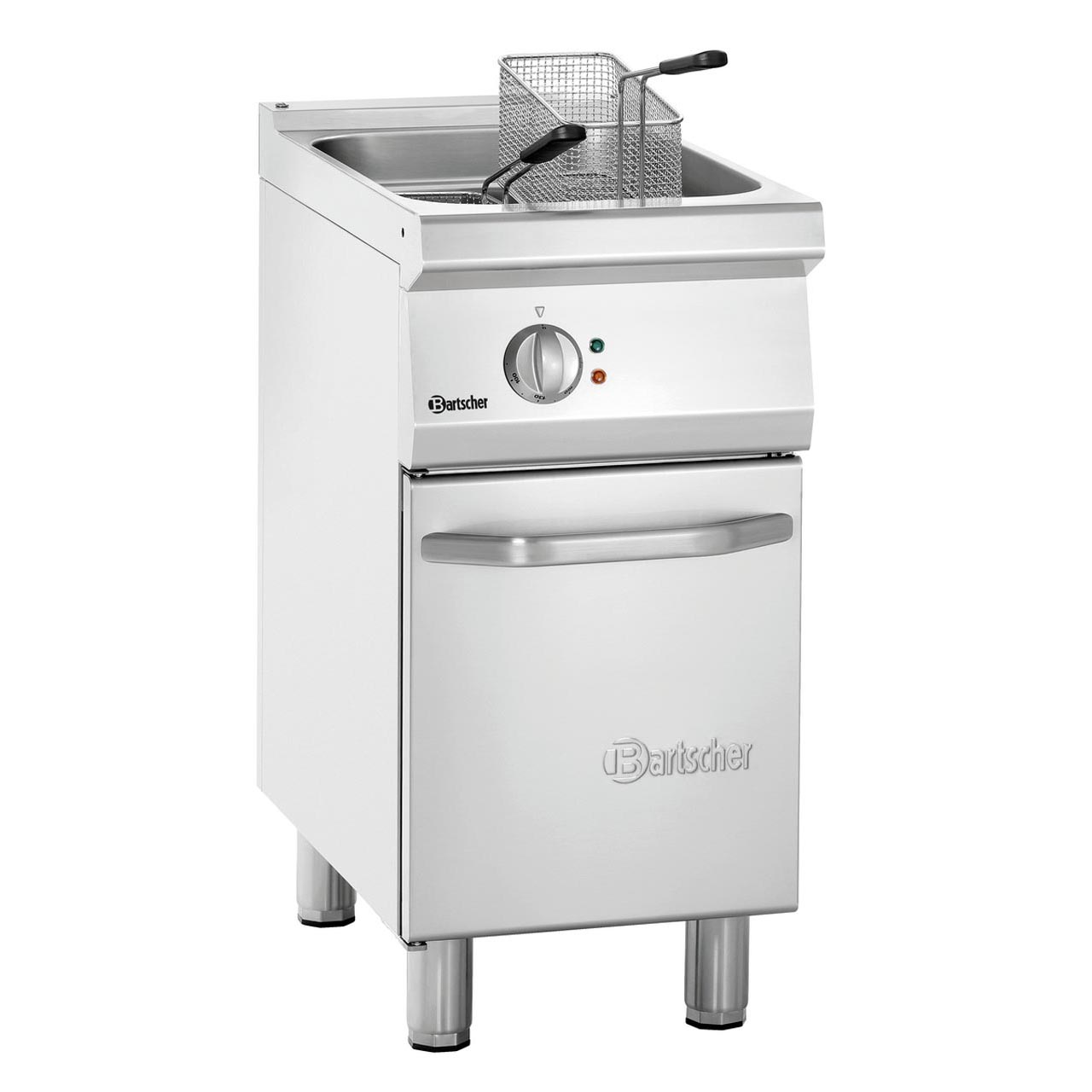 Fritéza elektrická s objemem 15 litrů s velkou studenou zónou. Materiál: nerezová ocel, CNS 18/10. Provozní režim: elektrika 1 vana s velkou studenou zónou, objem 15 litrů 2 fritovací koše, rozměr: Š 130 x H 280 x V 135, objem 2 x 4 litry. Křídlové dveře. Nádoba na zachycení mastnoty. Studená zóna, bezpečnostní termostat, výpustný ventil, kontrolka zahřátí. Teplotní rozmezí: od 100 do 190 °C. Nastavitelné nohy od 850 do 900 mm. Příkon: 15 kW / 400 V / 50 Hz / připojení 3 NAC. Rozměr: Š 400 x H 700 x V 850 mm. Hmotnost: 39,6 kg
