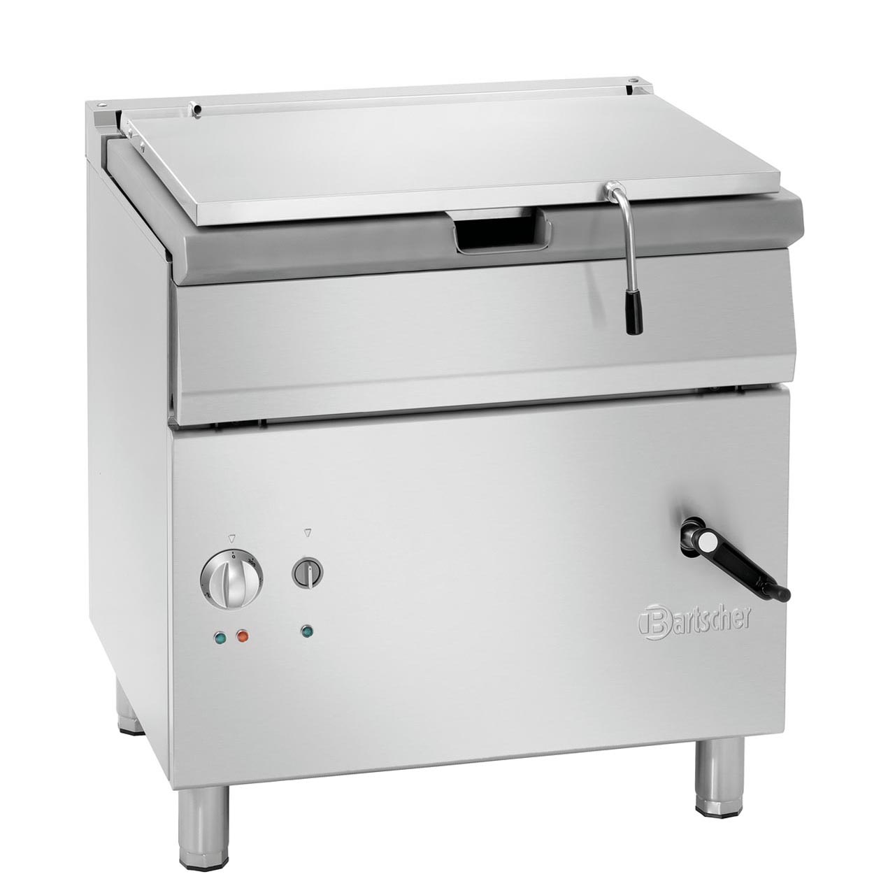 Stojící sklopná elektrická pánev obsahu 60 litrů. Čistá kapacita 52 litrů. Odklápěcí víko. Naklápěcí zařízení: manuální. Provozní režim: elektrický. Materiál CNS 18/10. Výškově nastavitelné nohy od 850 do 900 mm. Kontrolka zahřívání, zapnutí/vypnutí. Připojení vody 3/4". Kohout pro přívod vody. Teplotní rozsah: od 50 °C do 300 °C. Pánev: nerezová ocel, duplexní dno; rozměr: Š 670 x H 400 x V 190 mm. Příkon: 10 kW / 400 V / 50 Hz. Připojení zařízení 3 NAC. Rozměr: Š 800 x H 700 x V 850 mm. Hmotnost: 109,4 kg.