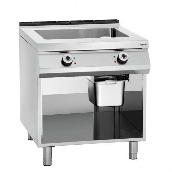 Elektrická multifunkční pánev volně stojící v kvalitním nerezovém provedení. Pánev objemu 32 litrů má otevřený podstavec a stabilní nožky s nastavitelnou výškou. Materiál CNS 18/10. Zaoblená nádoba vyrobena z nerezové oceli. Provozní režim: elektrický. 1 pánev – objem 32 litrů. CNS 18/10, Š 630 x H 510 x V 110 mm. Spodní konstrukce: otevřená. Rozměr: Š 721 x H 841 x V 473 mm. 2 zóny samostatně regulovatelné, připojení 3,5 kW. Tloušťka desky 15 mm. Nádoba na tuk GN 1/2 - 200 mm. Nastavitelné nohy od 900 do 950 mm. Teplotní rozpětí od 70 do 300 °C. Příkon: 10 kW / 400 V / 50/60 Hz, 3 NAC. Rozměr: Š 800 x H 900 x V 935 mm. Hmotnost: 98,2 kg.