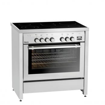 Sporák elektrický s 5 plotýnkami. Třída energetické účinnosti A. Index energetické účinnosti 95,3 Spotřeba energie horní/spodní ohřev 0,94 kWh / cyklus Spotřeba energie cirkulačního vzduchu 0,96 kWh / cyklus Rozměr skleněné plochy: Š 870 x H 550 mm Elektrický provozní režim. Varná deska sklokeramická Počet varných zón 5 Rozvod plotýnek 1 x 0,7/2,1 kW, 1 x 1,4/2,2 kW, 1 x 2,2 kW, 2 x 1,2 kW Velikost plotýnek 1 x O 125/215 mm, 1 x O 175/275 mm, 1 x 215 mm, 2 x 150 mm. Elektrická multifunkční trouba. Teplotní rozsah od 50 do 250 °C .4 vsuvy se vzdálenostmi mezi vsuvy 35/60/60 mm.Materiál varné komory ocel/smalt, objem 104 litrů. Hodnota připojení trouby 2,5 kW Rozměr trouby: Š 670 x H 435 x V 360 mm Funkce trouby: rozmrazování horkým vzduchem; gril; gril + horkovzduch; spodní + horní ohřev; cirkulující vzduch; spodní ohřev horkým vzduchem; horký vzduch. Vlastnosti trouby trojité zasklení, osvětlení, časovač, utěsněný varný prostor, úložný prostor pod troubou: Š 660 x H 450 x V 120 mm Vý