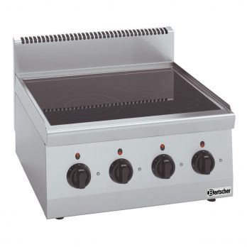 Stolní elektrický sporák se 4 elektrickými zónami v kvalitním nerezovém provedení. Varná plocha sklo keramika. Materiál CNS 18/10. Provozní režim: elektrický. Povrch vaření: sklo, typ varné plochy sklo-keramika. 4 varné zóny, elektrické. Rozložení 2 x 2,5 kW, 1 x 1,8 kW, 1 x 1,2 kW. Příkon: 8 kW / 400 V / 50 Hz, 3 NAC. Rozměr: Š 600 x H 600 x V 290 mm. Hmotnost 25 kg.