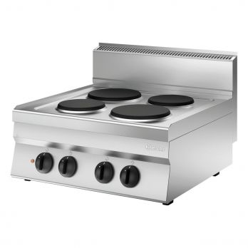 Stolní elektrický sporák série 650 je vyrobený z nerezové chrom-niklové oceli 18/10. Celkový příkon 8,2 kW, 4 hořáky (2 x 2,6 kW, 2 x 1,5 kW). Průměr hořáků 2x 220 mm a 2x 180 mm. Protiskluzové nožičky. Sporák velikosti Š 700 x H 650 x V 295 mm, hmotnost 30,6 kg.