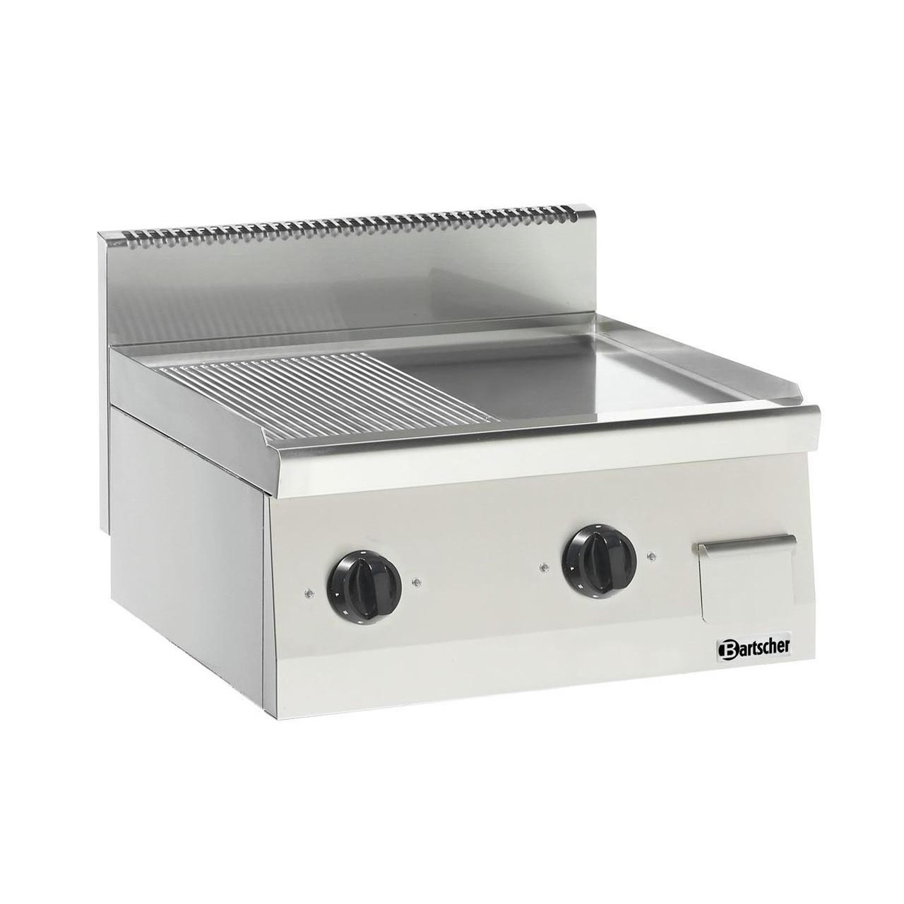 Stolní elektrická grilovací deska se 2 topnými zónami samostatně regulovatelnými v hladkém a rýhovaném provedení. Materiál CNS 18/10. Provozní režim: elektrický Kontrolka zahřátí, provozu. 2x topná zóna, speciální ocel, tvrdě pochromovaná. Hladká / rýhovaná: Š 590 x H 440 mm. Teplotní rozmezí od 50 do 320 °C. Nádoba na sběr tuku. Příkon: 7,2 kW / 400 V / 50 Hz. 3NAC. Rozměr: Š 600 x H 600 x V 290 mm. Hmotnost: 45 kg.