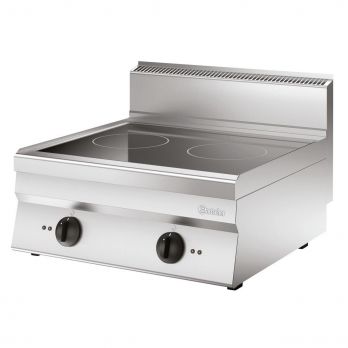 Elektrický stolní indukční sporák série 650 je vyrobený z nerezové chrom-niklové oceli 18/10. Varná plocha průměru 220 mm s příkonem 2 x 5 kW/400 V/50 Hz. Protiskluzové nožičky. 2 indukční plotýnky, varná deska skleněná, Š 648 x H 512 mm. Rozměr celkem Š 700 x H 650 x V 295 mm. Hmotnost 42,6 kg.