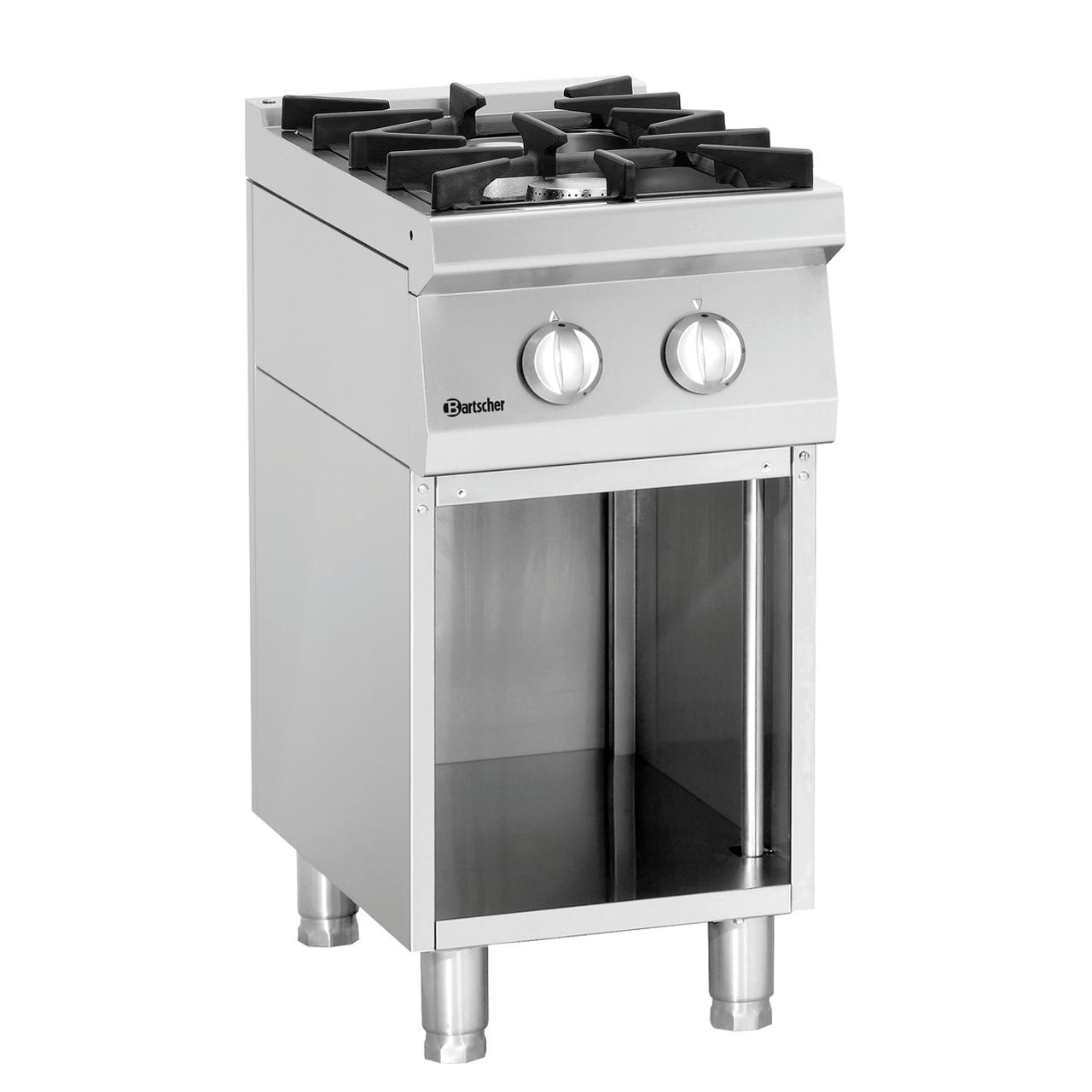 Sporák je vybaven 2 plynovými hořáky. Litinové rošty s odnímatelnou sběrnou vanou. Varná deska 330 x 270 mm. Materiál: CNS 18/10. Provozní režim: plyn, 2 plynové hořáky. Manuální zapalování, dvouokruhový plynový hořák, pilotní plamen. Rozměr varných desek: 330 x 270 mm. Příkon: 14,7 kW (rozdělení plotýnek: 1 x 6,2 kW, 1 x 8,5 kW) Spodní konstrukce: otevřená, Š 399 x H 610 x V 470 mm. Nastavitelné nohy od 850 do 900 mm. Rozměr: Š 400 x H 700 x V 850 mm. Hmotnost: 36,4 kg Zemní plyn H (20 mbar), trysky na kapalný plyn (50 mbar) a trysky na zemní plyn L (20 mbar) součástí dodávky.