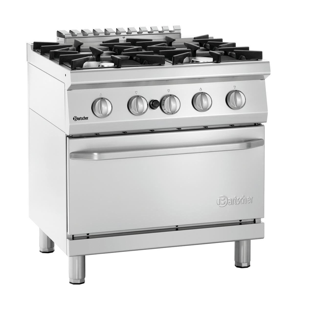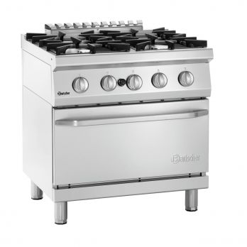 Plynový sporák s plynovou troubou GN 2/1 a 4 plynovými hořáky. Litinové rošty s odnímatelnou sběrnou vanou. Varná deska 330 x 270 mm. Materiál: CNS 18/10. Provozní režim: plyn 4 plynové hořáky Manuální zapalování, dvouokruhový plynový hořák, pilotní plamen. rozměr varných desek: 330 x 270 mm příkon: 36,9 kW (rozdělení plotýnek: 2 x 6,2 kW, 2 x 8,5 kW) trouba: plynová – spodní ohřev - CNS 18/0 objem: 126 litrů rozměr: Š 650 x H 565 x V 310 mm / GN 2/1 příkon: 7,5 kw /piezo zapalování teplotní rozmezí od 140 do 300 °C / 3 vsuvy vzdálenost 90 mm / odsávání par Nastavitelné nohy od 850 do 900 mm. Rozměr: Š 800 x H 700 x V 850 mm. Hmotnost: 115,4 kg Zemní plyn H (20 mbar), trysky na kapalný plyn (50 mbar) a trysky na zemní plyn L (20 mbar) součástí dodávky.