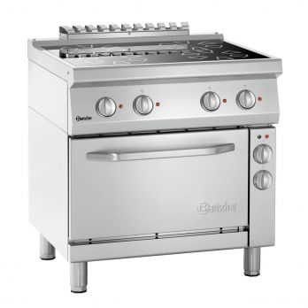 Sporák s elektrickou troubou má 4 varné zóny, typ sklo-keramika. Varná deska SCHOTT CERAN®. Materiál: CNS 18/10. Robustní konstrukce, jednoduchá údržba. Provozní režim: elektrický 4 varné zóny – sklo keramika Příkon: 12,85 kW / 400 V / 50 Hz / připojení 3 NAC. Rozměr desky: Š 745 x H 550 mm. Rozdělení varných zón 4 x 2,3 kW. Průměr 4 x 210 mm. trouba – elektrická, multifunkční - oběhový vzduch – ušlechtilá ocel objem: 58 litrů rozměr: Š 535 x H 370 x V 290 mm / GN 1/1 příkon/napětí: 3,65 kW teplotní rozmezí od 100 do 300 °C / 3 vsuvy vzdálenost 90 mm / odsávání par Nastavitelné nohy od 850 do 900 mm. Rozměr: Š 800 x H 700 x V 850 mm. Hmotnost: 83,2 kg.