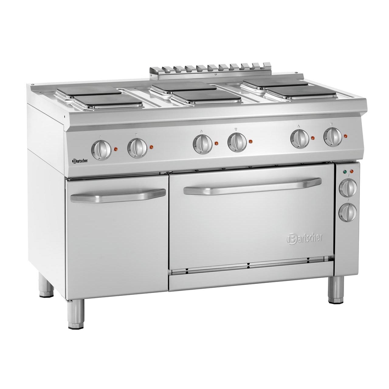Elektrický sporák s elektrickou troubou. Sporák elektrický má 6x varné hranaté plotýnky 220 x 220 mm. Přizpůsobený pro GN 1/1. Materiál: CNS 18/10. Robustní konstrukce, jednoduchá údržba. Provozní režim: elektrický 4 elektrické hranaté plotýnky Příkon: 19,25 kW / 400 V / 50/60 Hz / připojení 3 NAC. Rozdělení varných zón 6 x 2,6 kW. Rozměr 6 x 220 x 220 mm. trouba – elektrická, multifunkční - oběhový vzduch – ušlechtilá ocel objem: 58 litrů rozměr: Š 535 x H 370 x V 290 mm / GN 1/1 příkon/napětí: 3,65 kW teplotní rozmezí od 100 do 300 °C / 3 vsuvy vzdálenost 90 mm / odsávání par spodní konstrukce – křídlová dvířka rozměr: Š 350 x H 600 x V 400 mm Nastavitelné nohy od 850 do 900 mm. Rozměr: Š 1200 x H 700 x V 850 mm. Hmotnost: 128,8 kg.