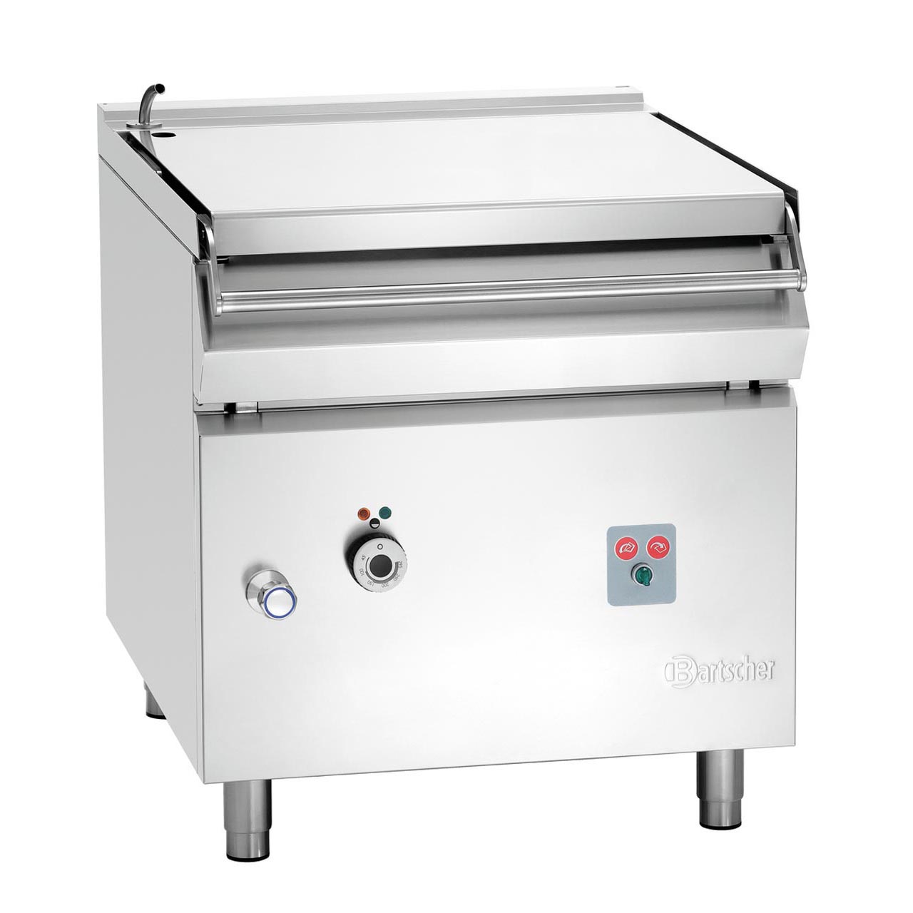 Elektrická výklopná pánev volně stojící v kvalitním nerezovém provedení. Pánev výklopná z nerezové oceli obsahu až 70 litrů. Elektrický model s elektrickým naklápěcím zařízením. Provozní režim: elektrický 1 pánev – nerezová ocel, Š 720 x H 610 x V 225 mm. Elektrické naklápěcí zařízení. Obsah 87 litrů. Čistý obsah 70 litrů. Hloubka gastronádob max. 150 mm. Nastavitelné nohy od 900 do 950 mm. Spodní konstrukce: uzavřená, křídlové dveře. Indikátor světla: zapnutí /vypnutí ohřevu. Vodovodní přípojka: přívodní ventil studené nebo teplé vody pr.12 mm. Kohout pro přívod vody. Teplotní rozsah: od 100 do 300 °C. Materiál CNS 18/10. Příkon: 10,2 kW / 400 V / 50/60 Hz, 3 NAC. Rozměr: Š 800 x H 900 x V 900 mm. Hmotnost: 162 kg.