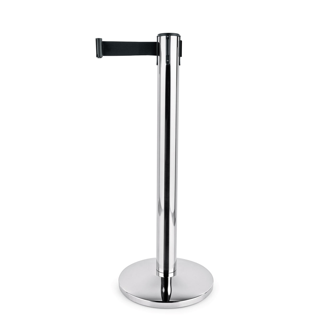 Vymezovač prostoru sada LARGEFLEX, leštěný vzhled, 450 cm, sada 2 ks, černá webbing, nerezová ocel, sklolaminát. Vynikající volba pro moderní gastronomii i náročné domácí použití.