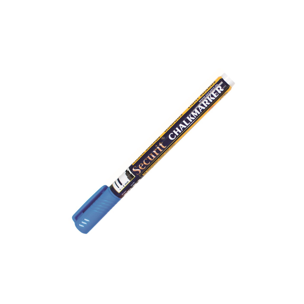 Křídový mikro popisovač, šířka hrotu: 1 - 2 mm, modrý. Po uschnutí je odolný proti rozmazán, vyblednutí nebo smytí slabým deštěm. Čistí se houbičkou.