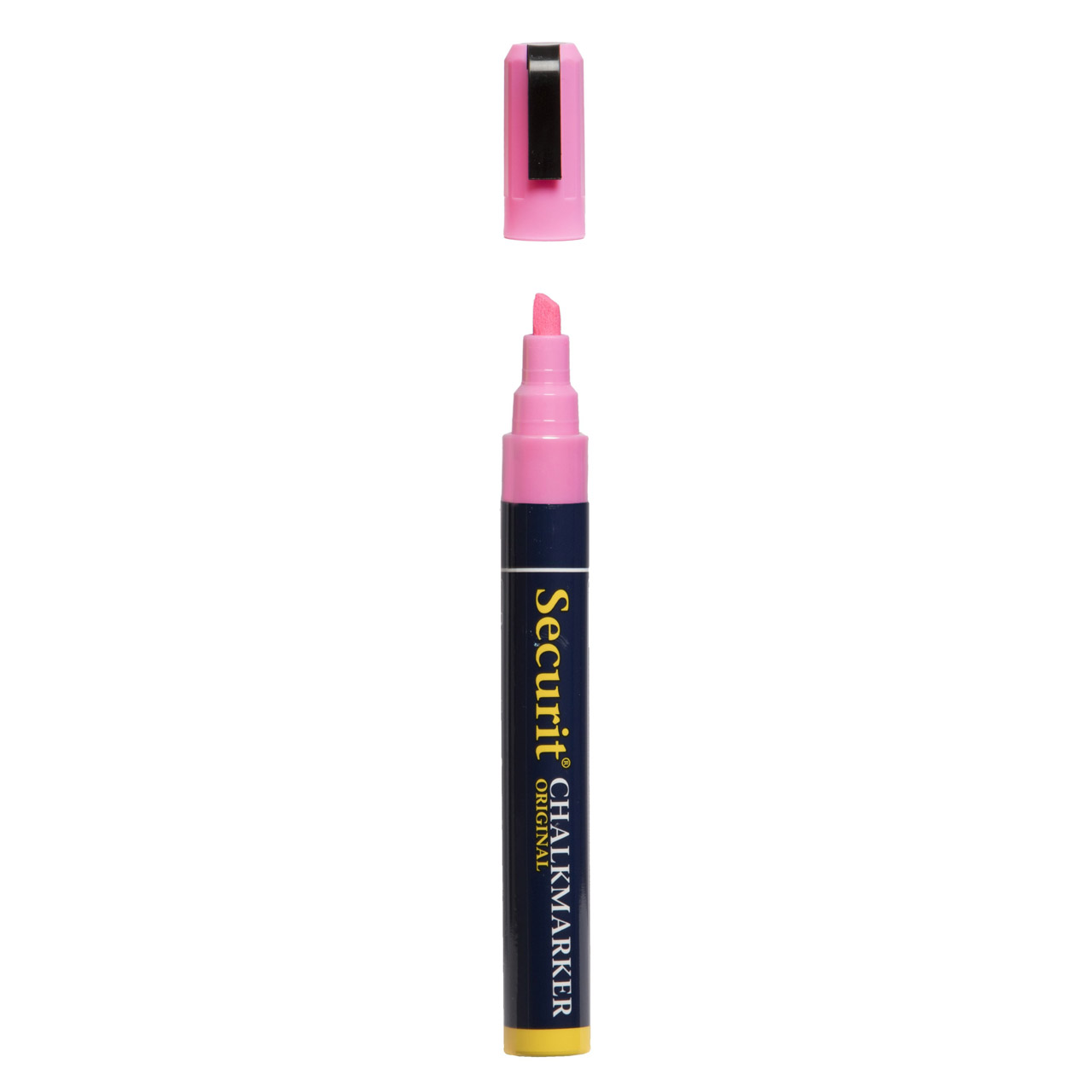 Křídový střední popisovač, šířka hrotu: 2 - 6 mm, růžový. Po uschnutí je odolný proti rozmazán, vyblednutí nebo smytí slabým deštěm. Čistí se houbičkou.