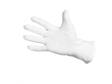 Bavlněné rukavice z jemného úpletu, bez manžety. 1 ks obsahuje pár - levou a pravou rukavici.