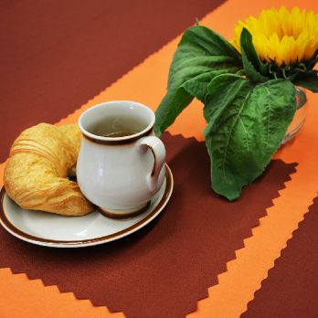 Ubrus teflonový 140 x 180 cm. Provedení v různých barvách na objednávku. Teflonové ubrusy jsou klasické polyesterové ubrusy ošetřeny slabou vrstvou teflonu a tím je docíleno vodoodpudivého efektu. Teflonové ubrusy nesají žádné tekutiny, tedy ani kávu, čaj nebo víno. Vylitá tekutina zůstává na povrchu teflonového ubrusu a lze ji jednoduše setřít ubrouskem či utěrkou. Nevztahuje se na mastnotu. Teflonové ubrusy jsou díky tomuto delší dobu čisté bez skvrn, které znáte z používání klasických ubrusů, a tím se výrazně snižují náklady na jejich údržbu. Údržba teflonových ubrusů je jednoduchá, perou se v běžné automatické pračce při 30°C. Teflonové ubrusy po vyprání rychle schnou. Teflonové ubrusy musíte vyžehlit, čímž se udržuje jejich vodoodpudivá schopnost. Teflonové ubrusy žehlíme na program syntetika.Gramáž 175g/m2.