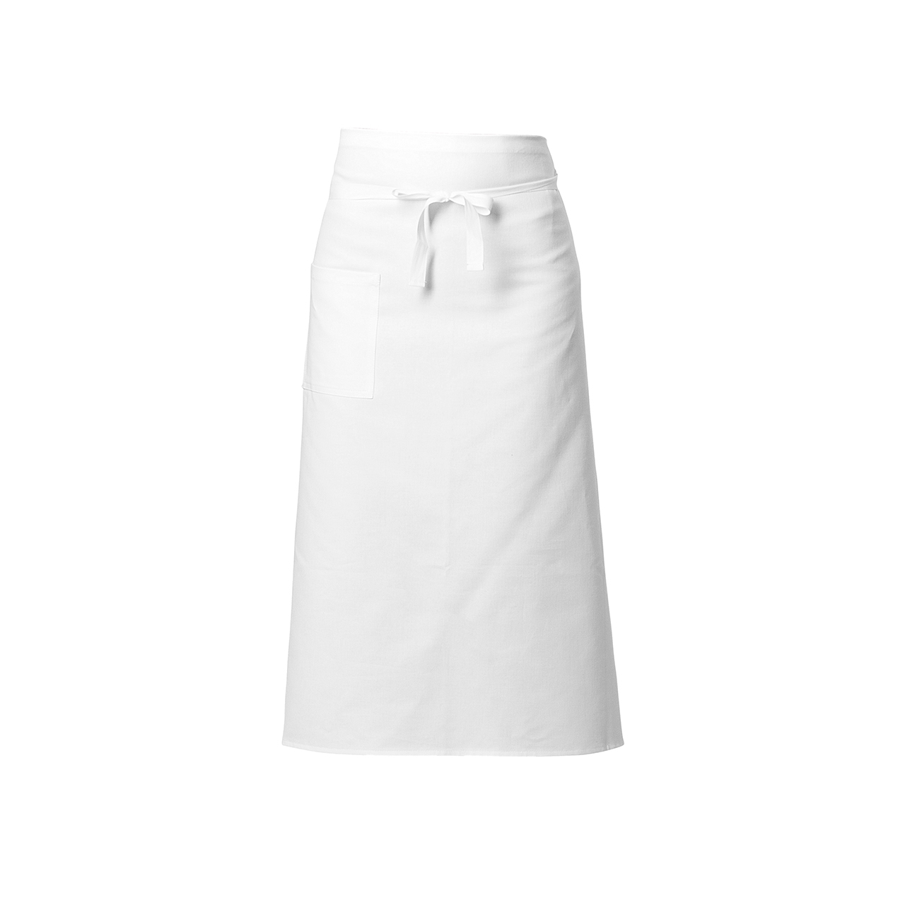 Zástěra dlouhá s kapsou bílá 100 % bavlna, gramáž 205 gr/m2, délka zástěry je cca 74 cm, šířka cca 87 cm
