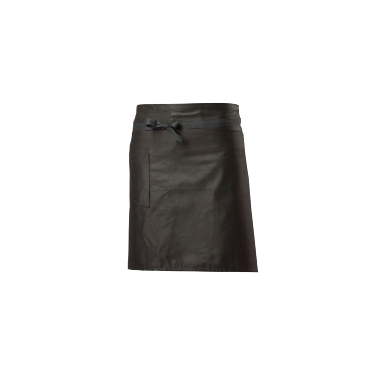 Zástěra krátká s kapsou černá 100 % bavlna,gramáž 205 gr/m2, délka zástěry cca 51 cm, šířka cca 89 cm.