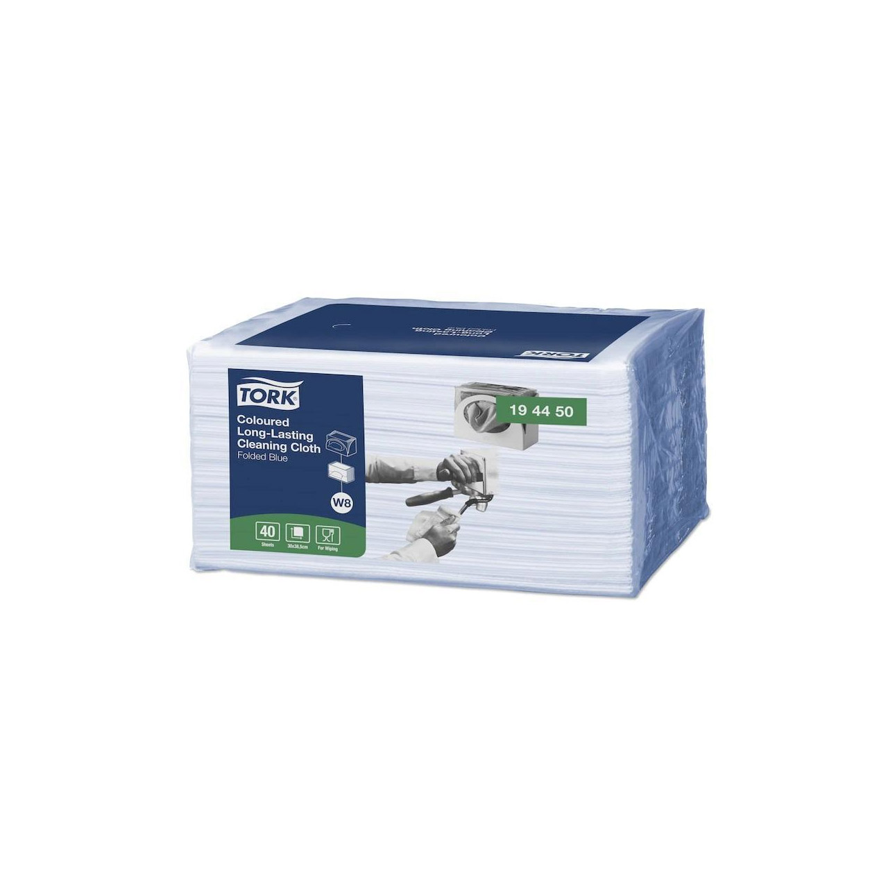 Speciální utěrka TORK z netkané textilie ve skládané verzi pomáhá zabránit křížové kontaminaci. Modrá utěrka určená pro úklid ostatních povrchů. Pevná utěrka s malým vlákněním. Pevný materiál znamená odolnost a opakované využití bez roztrhání. Jemný, textilní pocit, umožňuje precizní čištění. Může být použito za sucha i za mokra, s úklidovou chemií i s desinfekcí.