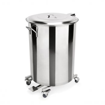 Koš nášlapný na kolečkách, 90 l, průměr 44 cm, chromniklová nerezová ocel. Vynikající volba pro moderní gastronomii i náročné domácí použití.